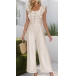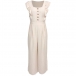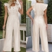This is a trendy and chic jumpsuit that exudes sophistication and flair. The square neckline offers a modern and stylish silhouette, and the front button detailing adds a classic and timeless element to the jumpsuit. The ruffle sleeveless design provides a playful and feminine touch, adding a dynamic and eye-catching detail to the ensemble. Perfect for daily wear.