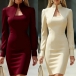 This dress features modern square neck styling with form-fitting bodycon silhouette and elegant long sleeve design for contemporary sophisticated allure. Perfect for formal wear.