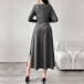 Fashion Square Neck Long Sleeve Cinch Waist Side Slit Maxi Dress