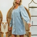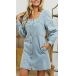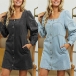 Fashion Square Neck Long Sleeve Front Button Side Pockets Old-washed Denim Dress