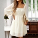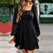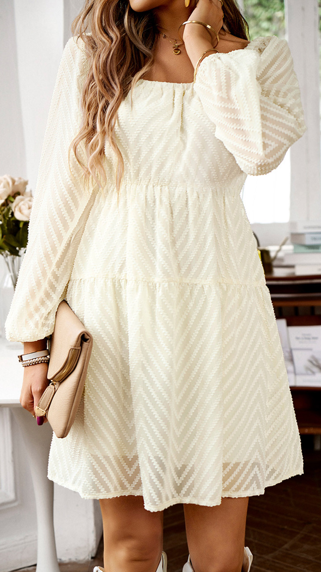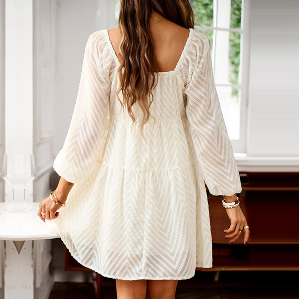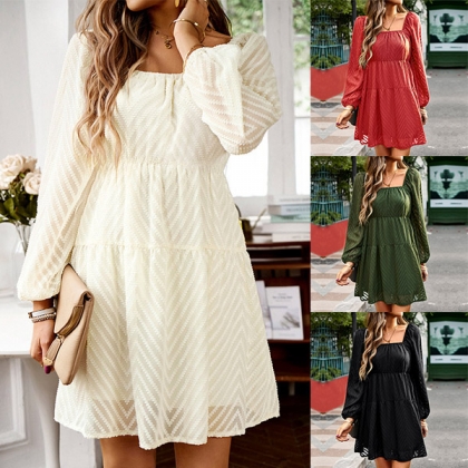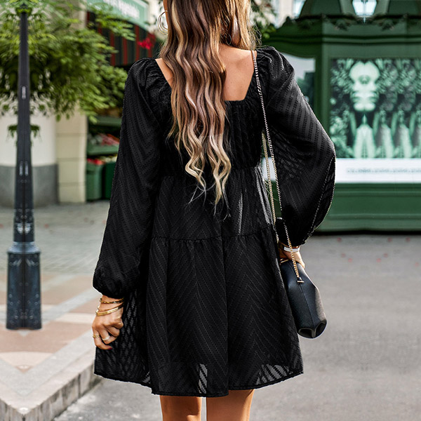 This dress features a square neckline, which adds a unique and modern touch to the design. The long sleeves provide coverage and a sense of sophistication. Perfect for this season!