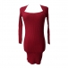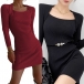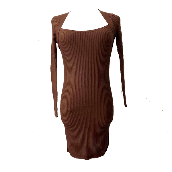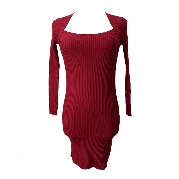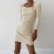 Fashion Square Neck Long Sleeve Ribbed Bodycon Dress