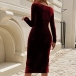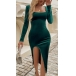 Fashion Square Neck Long Sleeve Side Slit Bodycon Dress