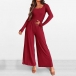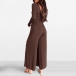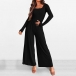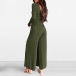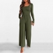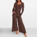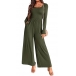 Fashion Square Neck Long Sleeve Wide-leg Jumpsuit
