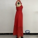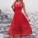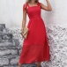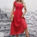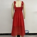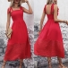 Fashion Square Neck Self-tie Shoulder Strap Backless High-rise Red Dress