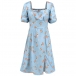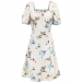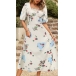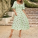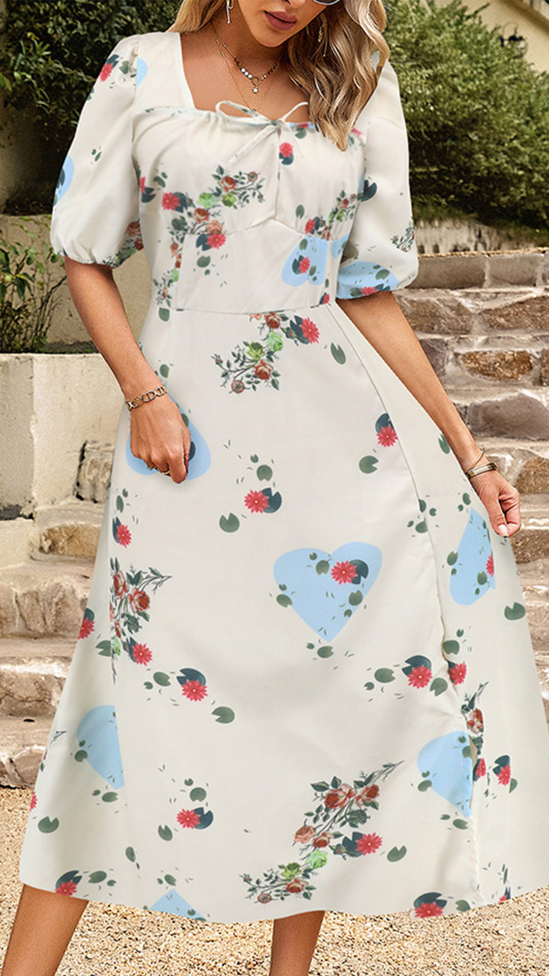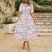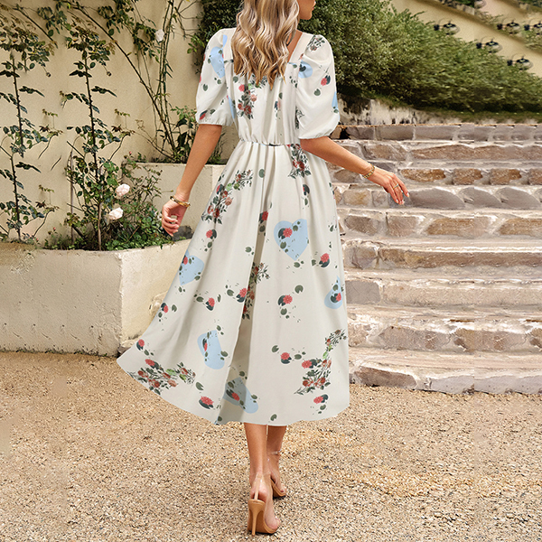 Fashion Square Neck Short Sleeve Floral Printed Midi Dress