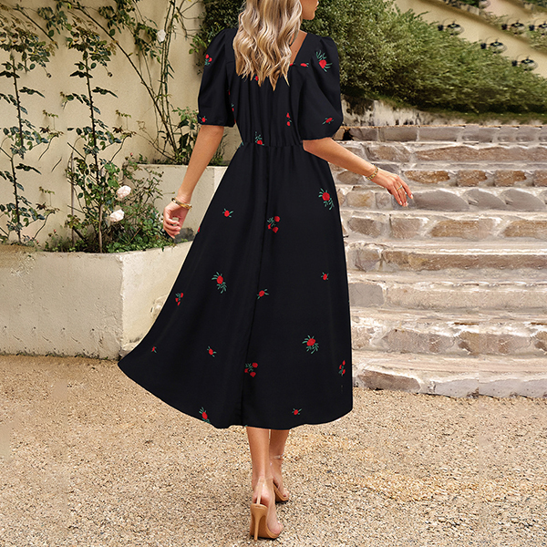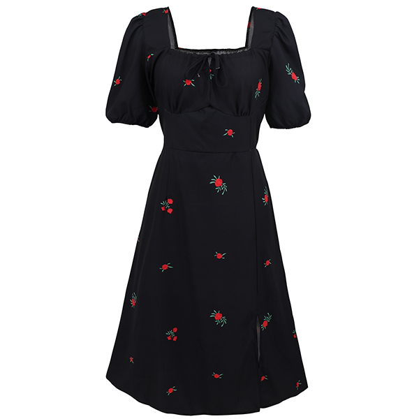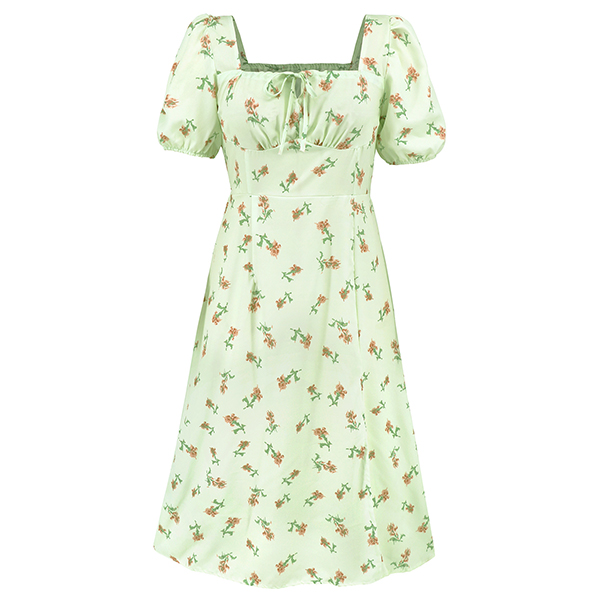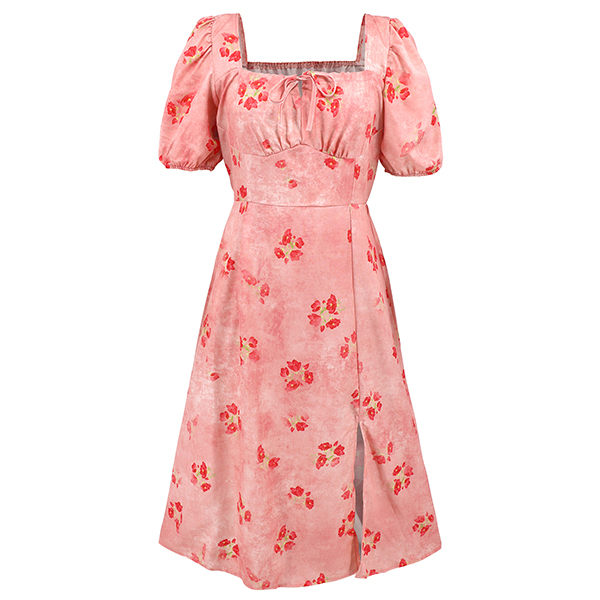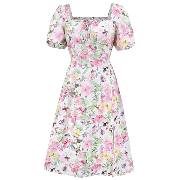 This dress features a square neckline that is modern and flattering. The floral print is fresh and vibrant, adding a pop of color and a romantic touch to the overall look. The midi length falls below the knee, creating a classic and elegant silhouette that is perfect for a variety of occasions. Wanna have a try?