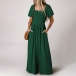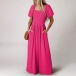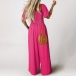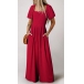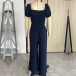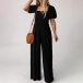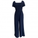 Fashion Square Neck Short Sleeve Smocked Bodice Straight-cut Jumpsuit