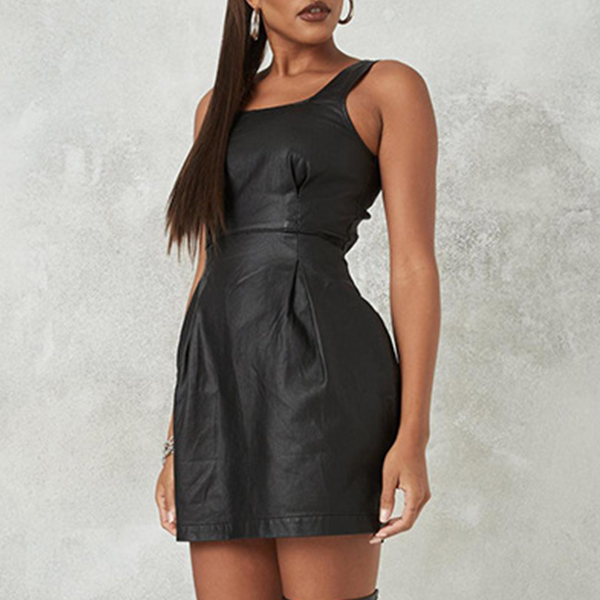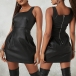 Fashion Square Neck Sleeveless Back Zipper Artificial Leather PU Dress