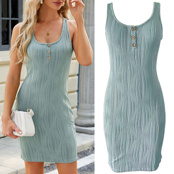 Fashion Square Neck Sleeveless Bodycon Tank Dress