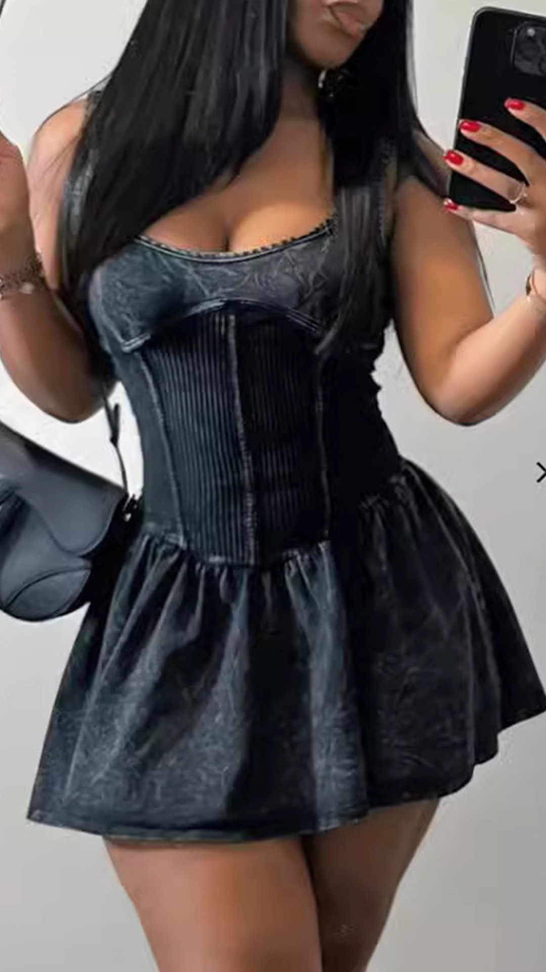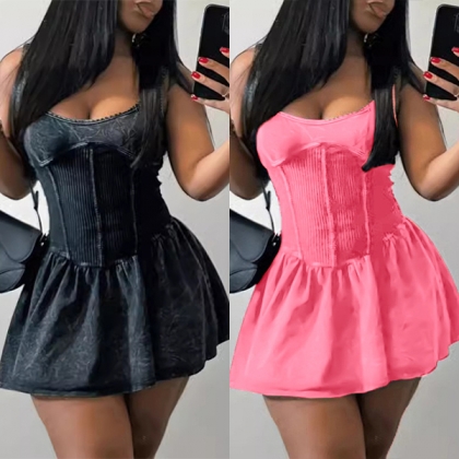 Fashion Square Neck Sleeveless Cinch Waist Tutu Dress