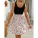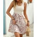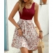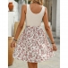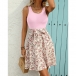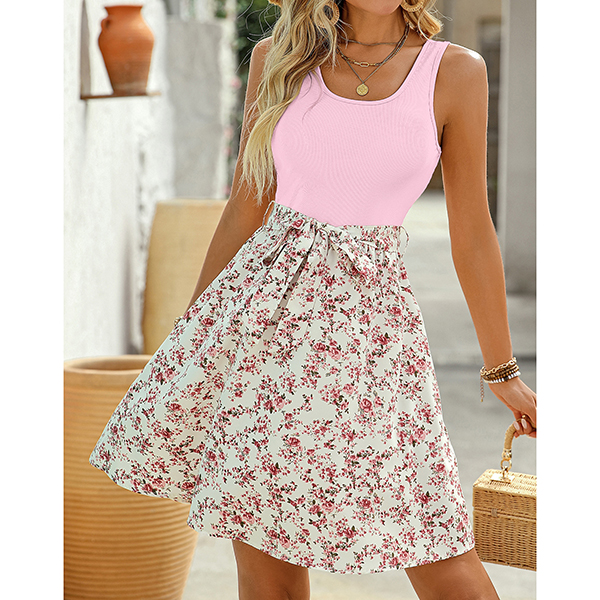 Fashion Square Neck Sleeveless Drawstring Ribbed Spliced Floral Printed Mini Dress