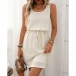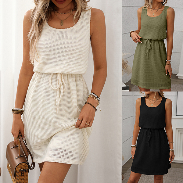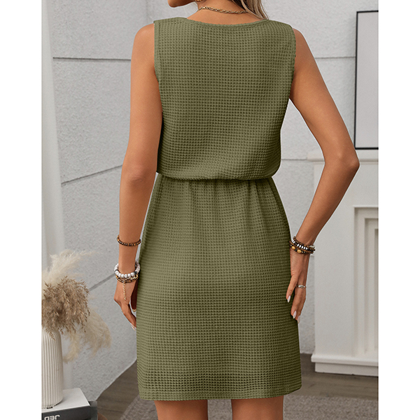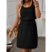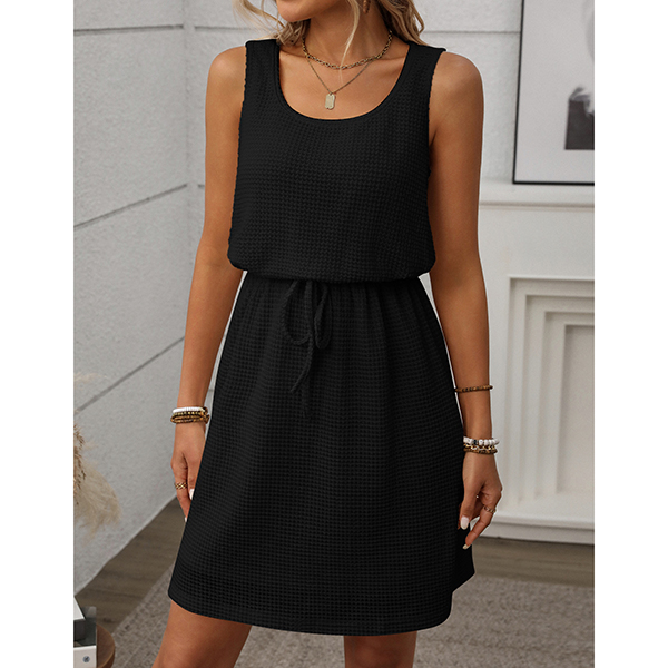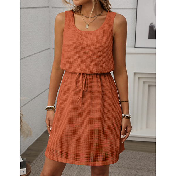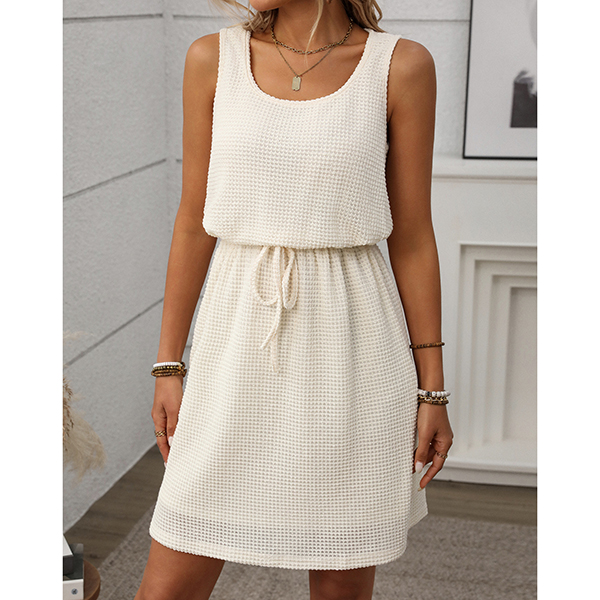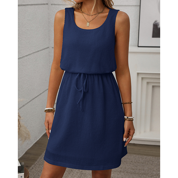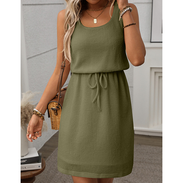 Fashion Square Neck Sleeveless Drawstring Waist Texture Mini Dress