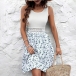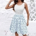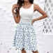 Look at this mini dress~ The white bodice spliced with vibrant floral print skirt adds a pop of color and femininity, making this dress perfect for any summer occasion.Pair it with sandals and a straw bag for a casual and effortless look.