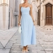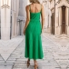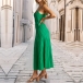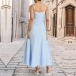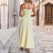 This is a timeless and elegant dress that exudes sophistication and class. The square neck design offers a modern and chic silhouette, highlighting your neckline beautifully. The sleeveless style is perfect for warmer weather and adds a contemporary touch to the dress. The pleated detailing adds texture and movement to the dress, creating a fluid and graceful look that drapes beautifully on the body. Pair it with a clutch bag and dainty jewelry to complete the outfit and make a lasting impression.