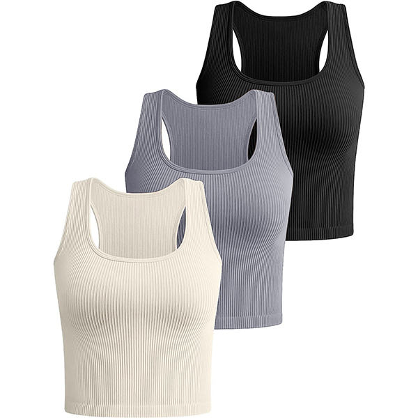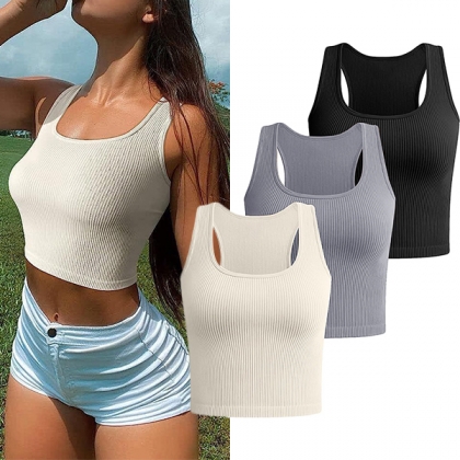 Fashion Square Neck Sleeveless Ribbed Crop Tank Top