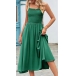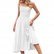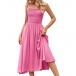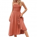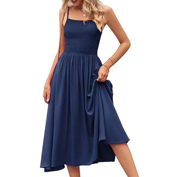 Fashion Square Neck Smocked Bodice Side Pockets Slip Dress
