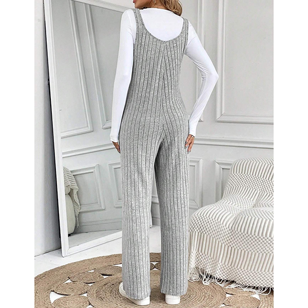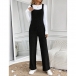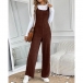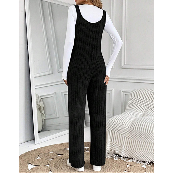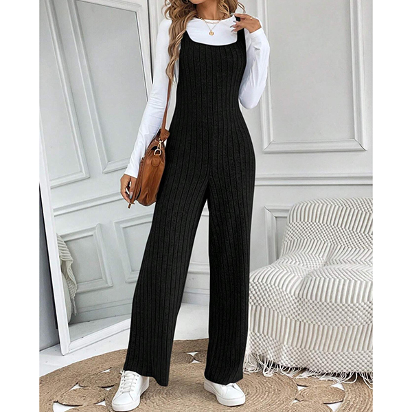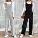 Fashion Square Neck Straight-cut Ribbed Suspender Jumpsuit