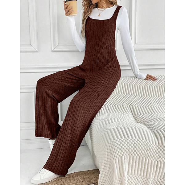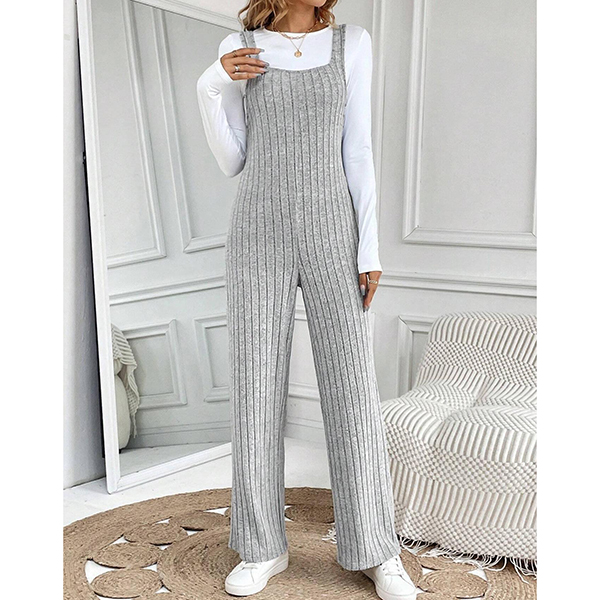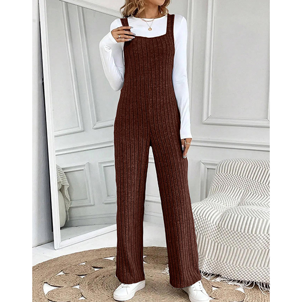 Step out in style with this Jumpsuit. This chic jumpsuit features a flattering square neckline for a customizable fit. The straight-cut legs create a sleek silhouette, while the ribbed fabric adds texture and comfort. Perfect for both casual outings and dressy occasions.
