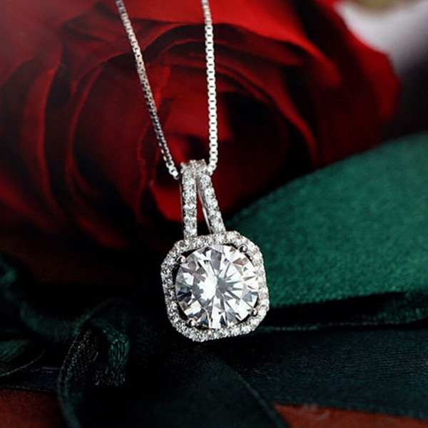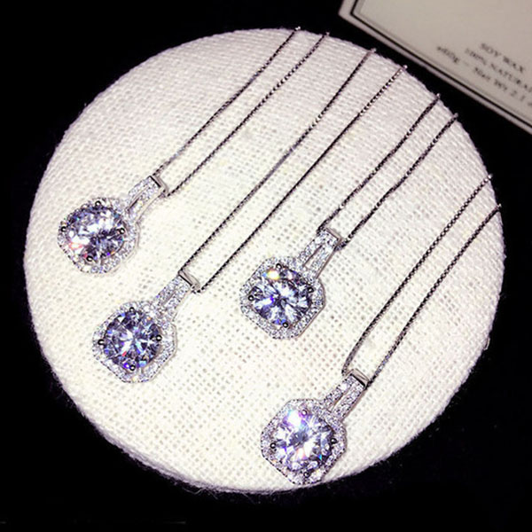 Fashion Square Rhinestone Pendant Necklace