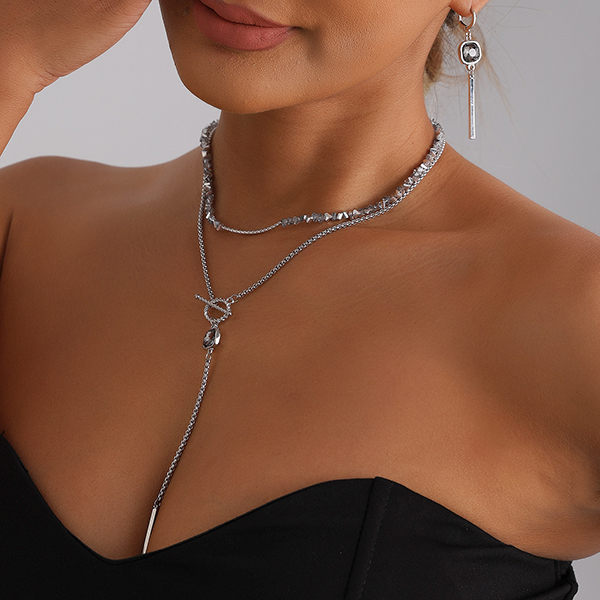 Fashion Square Rhinestone Pendant Necklace/Drop Earrings
