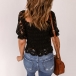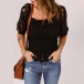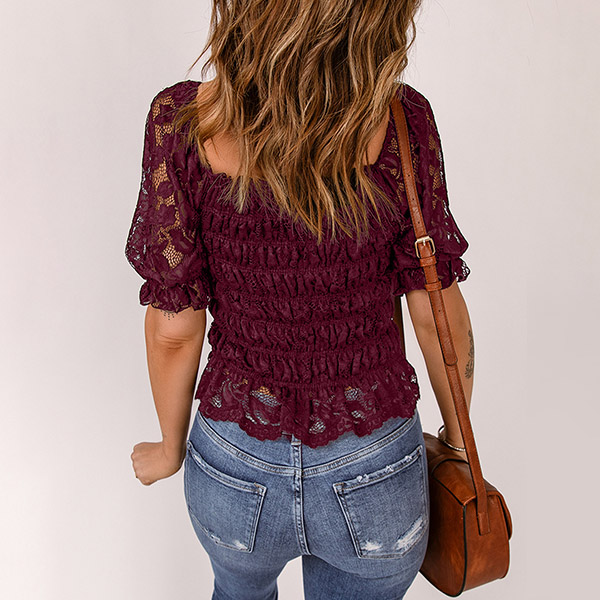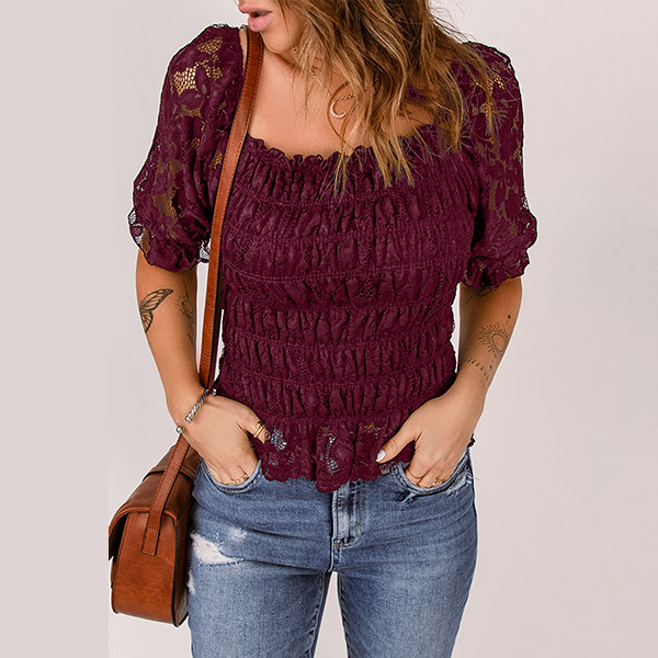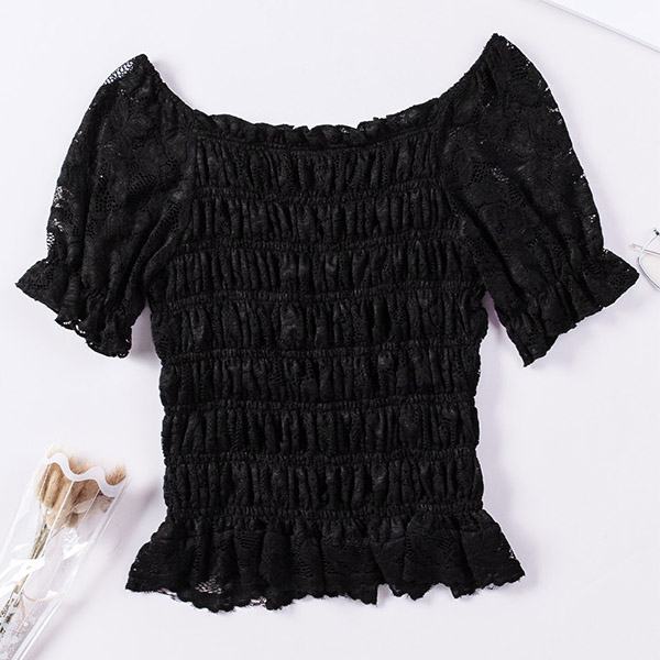 Fashion Squared Neck Short Sleeve Lace Spliced Shirt