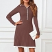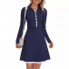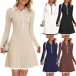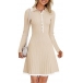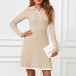 Fashion Stand Collar Button Long Sleeve Pleated Sweater Dress