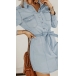 Fashion Stand Collar Buttoned Long Sleeve Self-tie Denim Shirt Dress