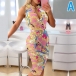 Fashion Stand Collar Buttoned Sleeveless Bodycon Dress with Belt