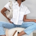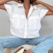 Fashion Stand Collar Cap Sleeve Chest Patch Pockets Crop Blouse