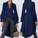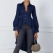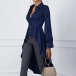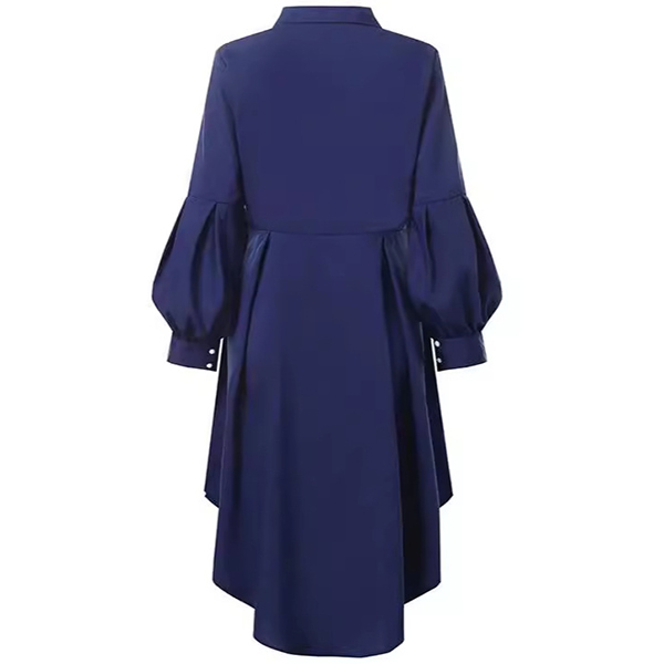 Fashion Stand Collar Front Button Long Sleeve High-low Hemline Shirt