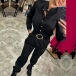 Fashion Stand Collar Front Button Long Sleeve Jumpsuit with Belt