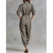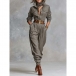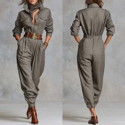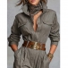 Fashion Stand Collar Front Button Long Sleeve Jumpsuit