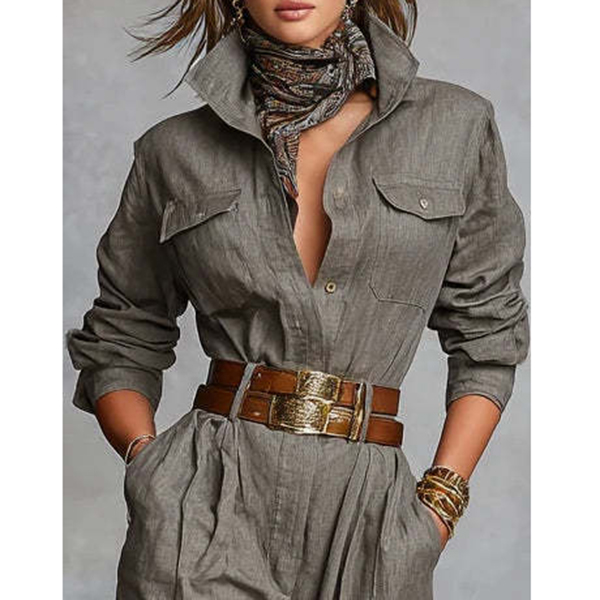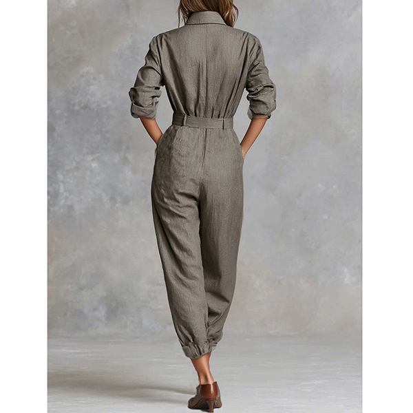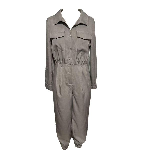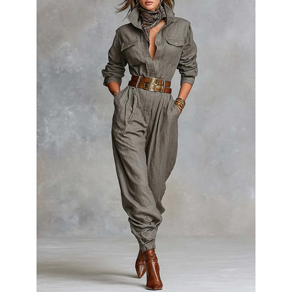 This jumpsuit features classic stand collar with elegant front button closure for polished one-piece styling. The button-front design brings classic tailoring whilst the jumpsuit format ensures effortless coordinated elegance. Perfect for daily wear.