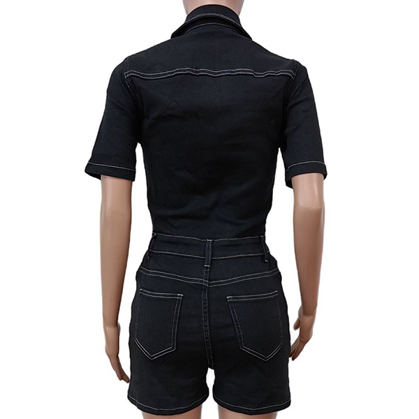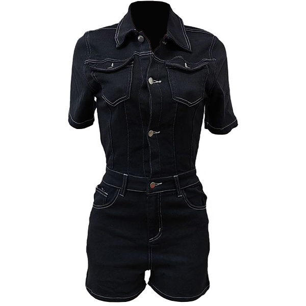 Look at this denim romper. The stand collar, button detailing, and short sleeves work together to create a piece that is both fashion-forward and incredibly versatile. Wanna have a try?