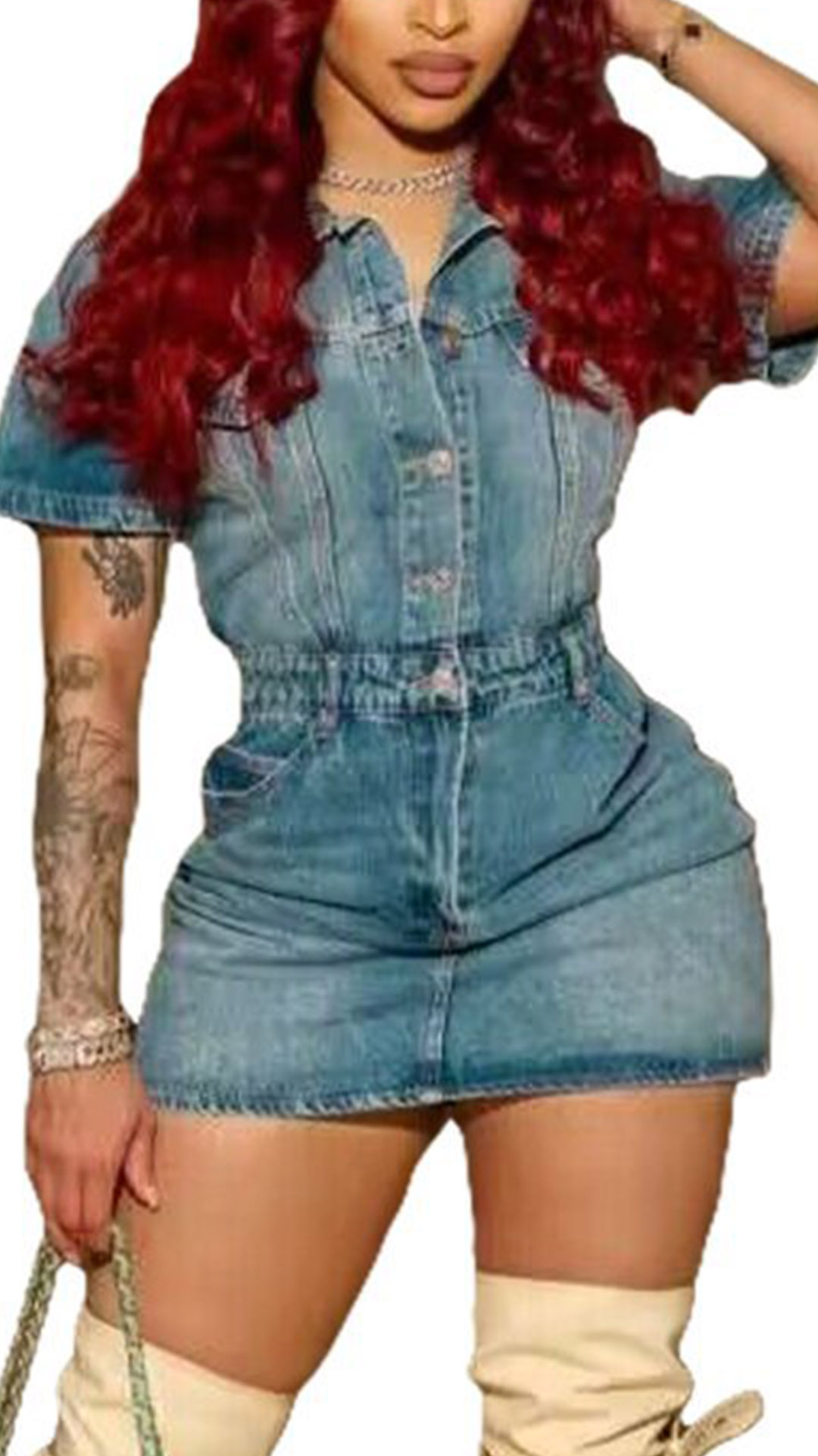 How about this denim dress? Crafted from high-quality old-washed denim fabric, this dress has a vintage and worn-in look that adds character and style. The stand collar adds a unique and fashion-forward element to the design, while the front button closure gives the dress a classic and timeless appeal. Wanna have one?
