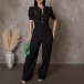 This is a chic and sophisticated jumpsuit that exudes modern elegance and trendsetting style. Featuring a front button closure, this jumpsuit offers a classic and timeless detail that adds a touch of flair to the design. While the wide-leg silhouette offers a modern and on-trend aesthetic that is flattering and fashion-forward. Wanna have a try?