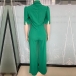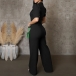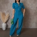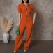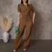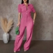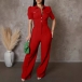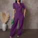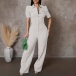 Fashion Stand Collar Front Button Short Sleeve Wide-leg Jumpsuit