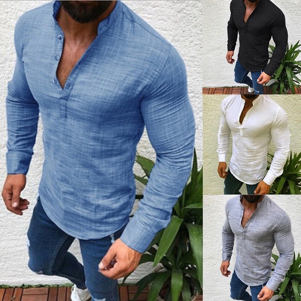 It designed with stand collar,long sleeve and one line buttons at the front of the shirt.Slim fit design which