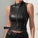 Fashion Stand Collar Front Zipper Sleeveless Artificial Leather PU Vest