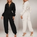 Fashion Stand Collar Half-zipper Multi-pockets Long Sleeve Jumpsuit