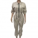 Fashion Stand Collar Half-zipper V-neck Sleeve-tab Drawstring Waist Side Patch Pockets Jumpsuit