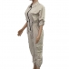 How about this jumpsuit? The stand collar and half-zipper V-neckline provide a structured, tailored look that exudes sophistication and refinement. It features sleeve-tab, side patch pockets and drawstring waist, perfect for daily wear.
