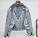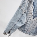 Fashion Stand Collar Long Sleeve Back Tassel Old-washed Denim Jacket