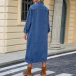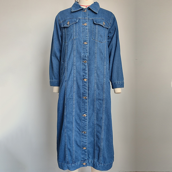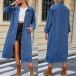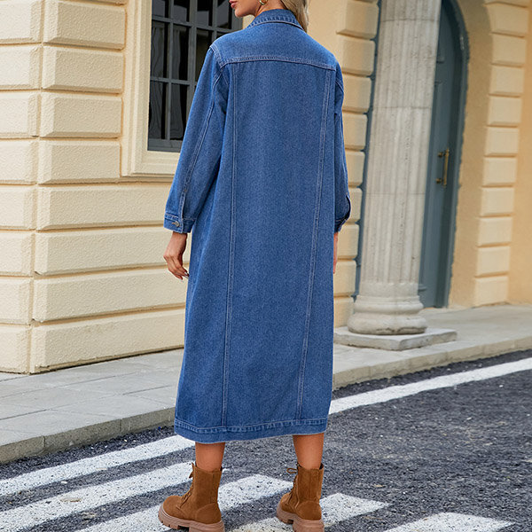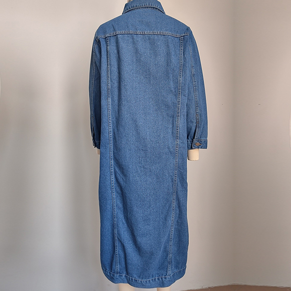 Fashion Stand Collar Long Sleeve Button Old-washed Denim Longline Jacket