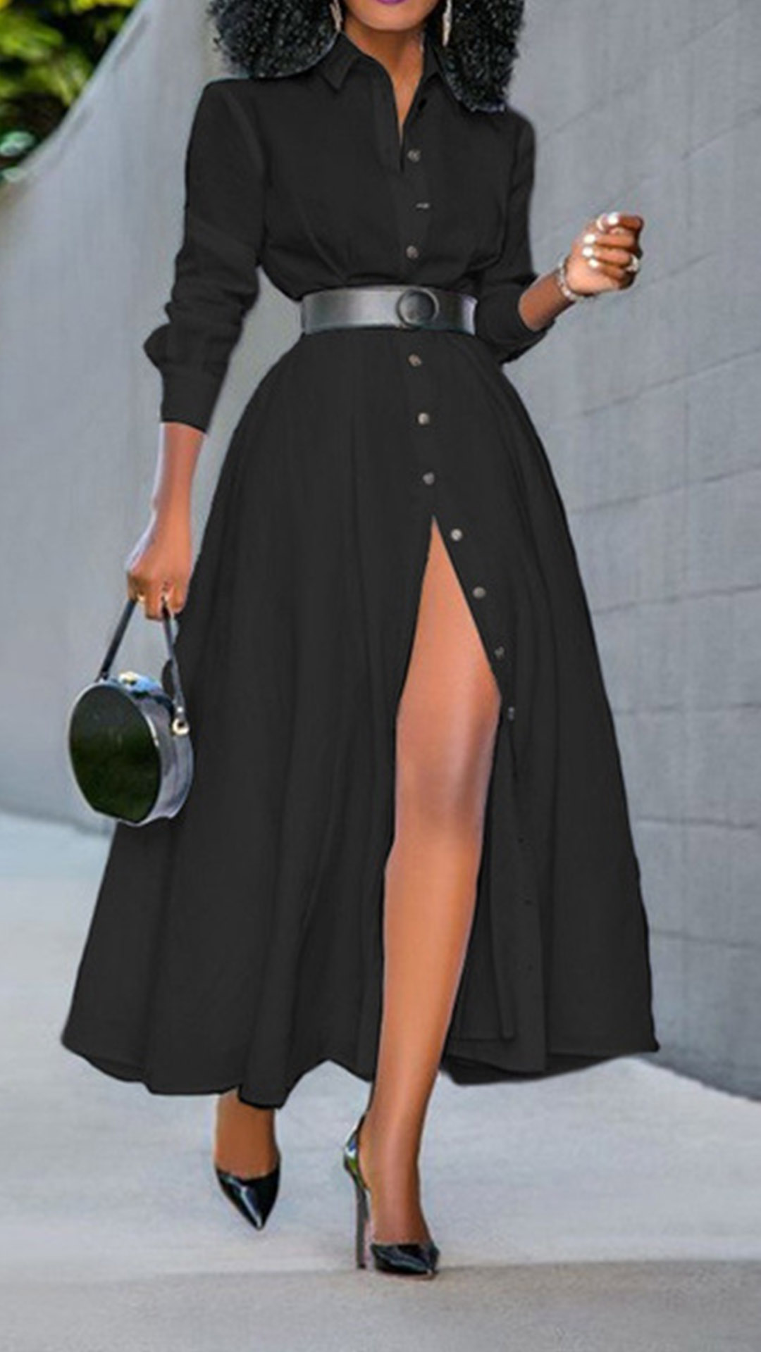 Fashion Stand Collar Long Sleeve Buttoned Shirt Dress (without Belt)