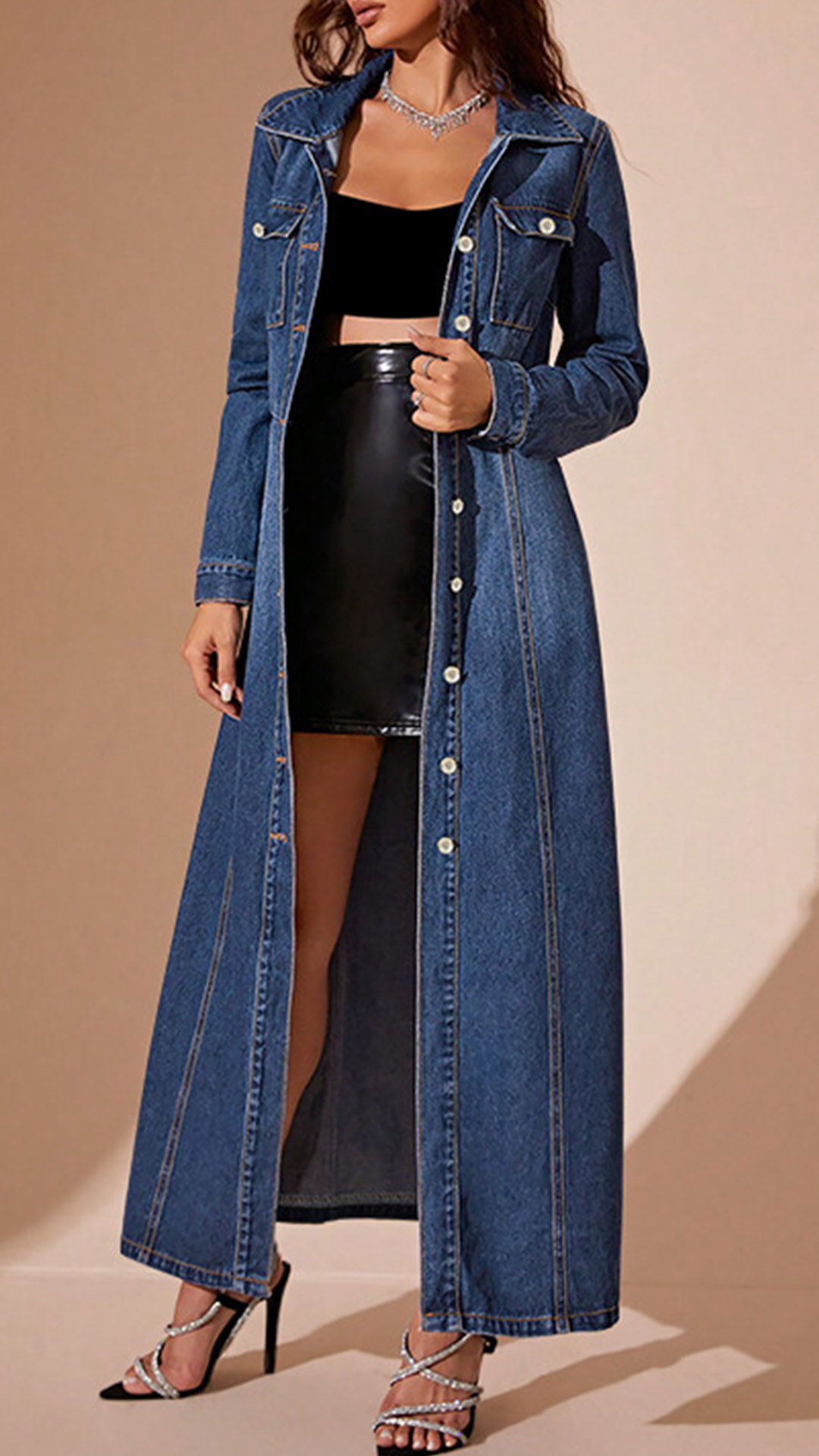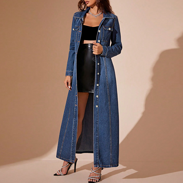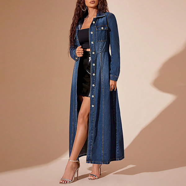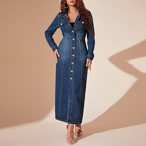 This maxi denim dress features a stand collar, long sleeve, cinch waist, front button and made of old-washed denim fabric, which adds a casual and laid-back feel. Wanna have one?