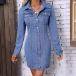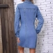 Fashion Stand Collar Long Sleeve Denim Shirt Dress