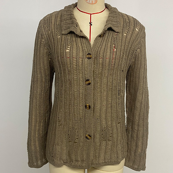 This stylish cardigan features a stand collar, long sleeves, and a distressed knitted design, creating a trendy and edgy look. Wanna have a try?