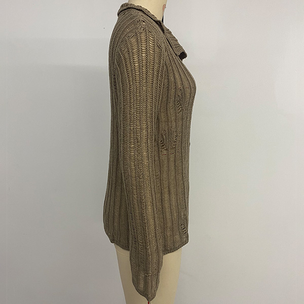 Fashion Stand Collar Long Sleeve Distressed Knitted Cardigan